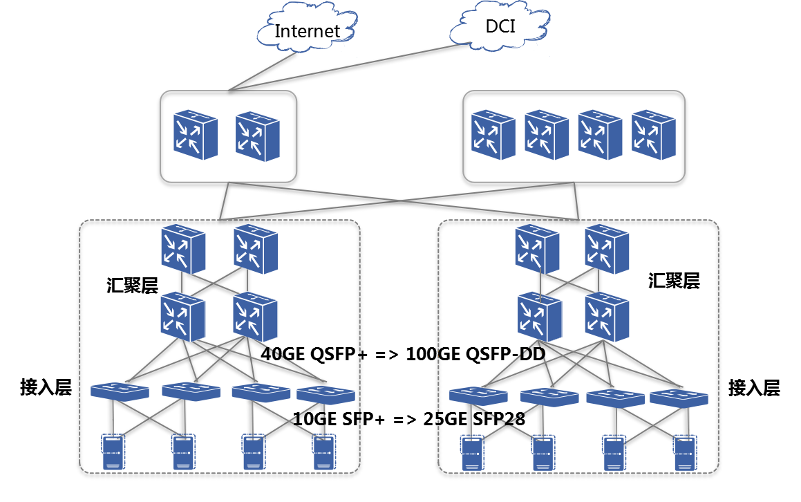 數(shù)據(jù)中心Fabric網(wǎng)絡(luò)匯聚端口發(fā)展--100GE 匯聚