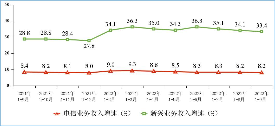 電信業(yè)務(wù)收入實現(xiàn)穩(wěn)步增長,電信業(yè)務(wù)總量保持兩位數(shù)增幅。前三季度,電信業(yè)務(wù)收入累計完成11971億元,同比增長8.2%,按照上年不變價計算的電信業(yè)務(wù)總量同比增長21.7%,增速均較上月持平。