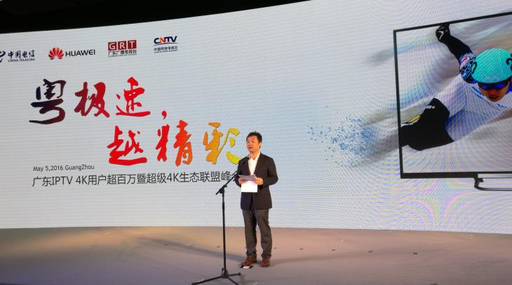 iccsz訊 中國(guó)電信廣東公司(下稱“廣東電信”)攜手華為公司、廣東廣播電視臺(tái)、中國(guó)網(wǎng)絡(luò)電視臺(tái)、阿里體育、科大訊飛等合作伙伴,在電信廣場(chǎng)召開“粵極速·越精彩——廣東IPTV 4K用戶超百萬(wàn)暨超級(jí)4K生態(tài)聯(lián)盟峰會(huì)”發(fā)布會(huì),宣布光寬用戶超千萬(wàn)、IPTV 4K用戶超百萬(wàn),全球首發(fā)超級(jí)4K產(chǎn)品。