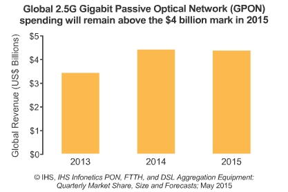 *從全球來看,2015年一季度PON設(shè)備市場收入相比上一年增加了18%。