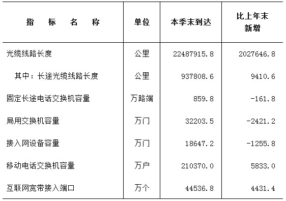 2015年第二季度通信業(yè)主要通信能力