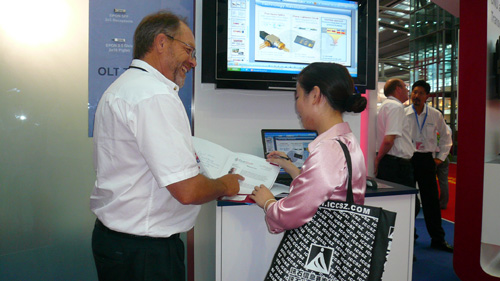 【訊石光通訊咨詢網(wǎng)】在第十一屆光博會上,紅白相間的大展臺吸引了大家的眼球,展臺前也聚集了大批的客人。走近一看,原來是從加拿大渥太華遠(yuǎn)道而來的參展商