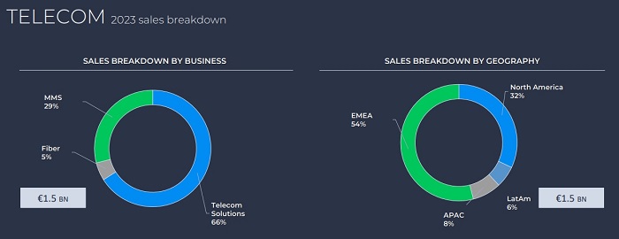 Telecom部門營(yíng)收14.89億歐元(其中光纖占5%),有機(jī)下滑18.9%。營(yíng)收下滑主要是由于銷量下降,尤其是2023年下半年的北美市場(chǎng)。除了正常的業(yè)務(wù)季節(jié)性因素之外,第四季度的業(yè)績(jī)進(jìn)一步受到負(fù)面一次性因素的影響。此外,YOFC的貢獻(xiàn)也較低,為2700萬(wàn)歐元,低于前一年的4000萬(wàn)歐元。