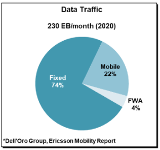 據(jù)GSA稱,已有400多家運(yùn)營(yíng)商商用了FWA網(wǎng)絡(luò),支持全球約7000萬(wàn)個(gè)連接。2020年,FWA連接數(shù)量?jī)H占移動(dòng)寬帶用戶總數(shù)的1%,然而,典型的FWA連接每月消耗約150GB數(shù)據(jù)流量,占全球移動(dòng)和FWA網(wǎng)絡(luò)流量總和的15%(出處:愛(ài)立信移動(dòng)報(bào)告)。
