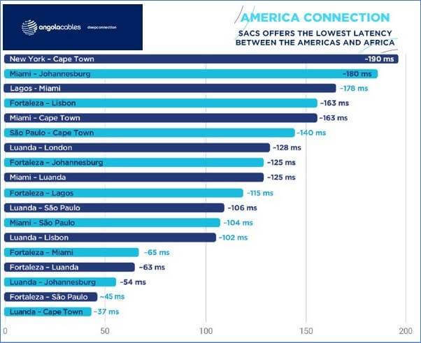SACS 通過 Angola羅安達(dá)和巴西福塔雷薩之間的直接連接,可以更快地訪問拉丁美洲,并通過Monet光纜連接連接美國和歐洲。