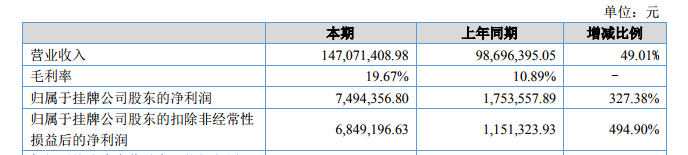 ICCSZ訊 (編輯:Nicole)8月20日,廣東瑞谷光網(wǎng)通信股份有限公司(以下簡(jiǎn)稱(chēng):瑞谷光網(wǎng))公布2018上半年業(yè)績(jī):報(bào)告期內(nèi),公司營(yíng)業(yè)收入為 1.471億元,較去年同期增加 49.01%,主要原因?yàn)楣痉e極開(kāi)拓客戶,訂單量較去年有所增加;凈利潤(rùn) 692.223萬(wàn)元,較去年同期 175.356萬(wàn)元增長(zhǎng) 294.75%,主要原因?yàn)橛唵我?guī)模增加,規(guī)模效應(yīng)體現(xiàn),公司盈利能力增強(qiáng),毛利率由去年同期的 10.89%提升到 19.67%。