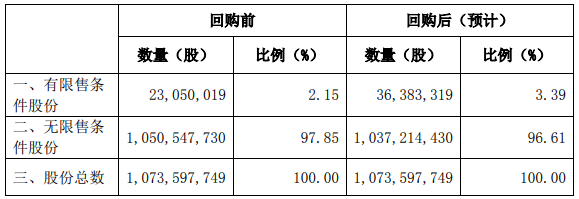 此外,本次股份回購實施完成后,不會導(dǎo)致公司控股股東和實際控制人發(fā)生變化,不會改變公司的上市公司地位,股權(quán)分布情況仍然符合上市的條件。