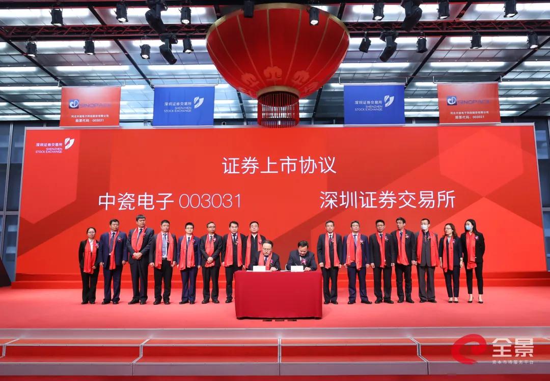 ICC訊 2021年1月4日,河北中瓷電子科技股份有限公司(證券簡(jiǎn)稱:中瓷電子 證券代碼:003031)在深圳證券交易所上市大廳隆重舉行新股發(fā)行上市儀式。
