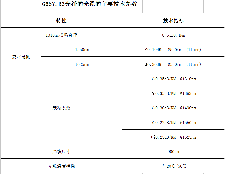 G657B3光纖具有以下特性: