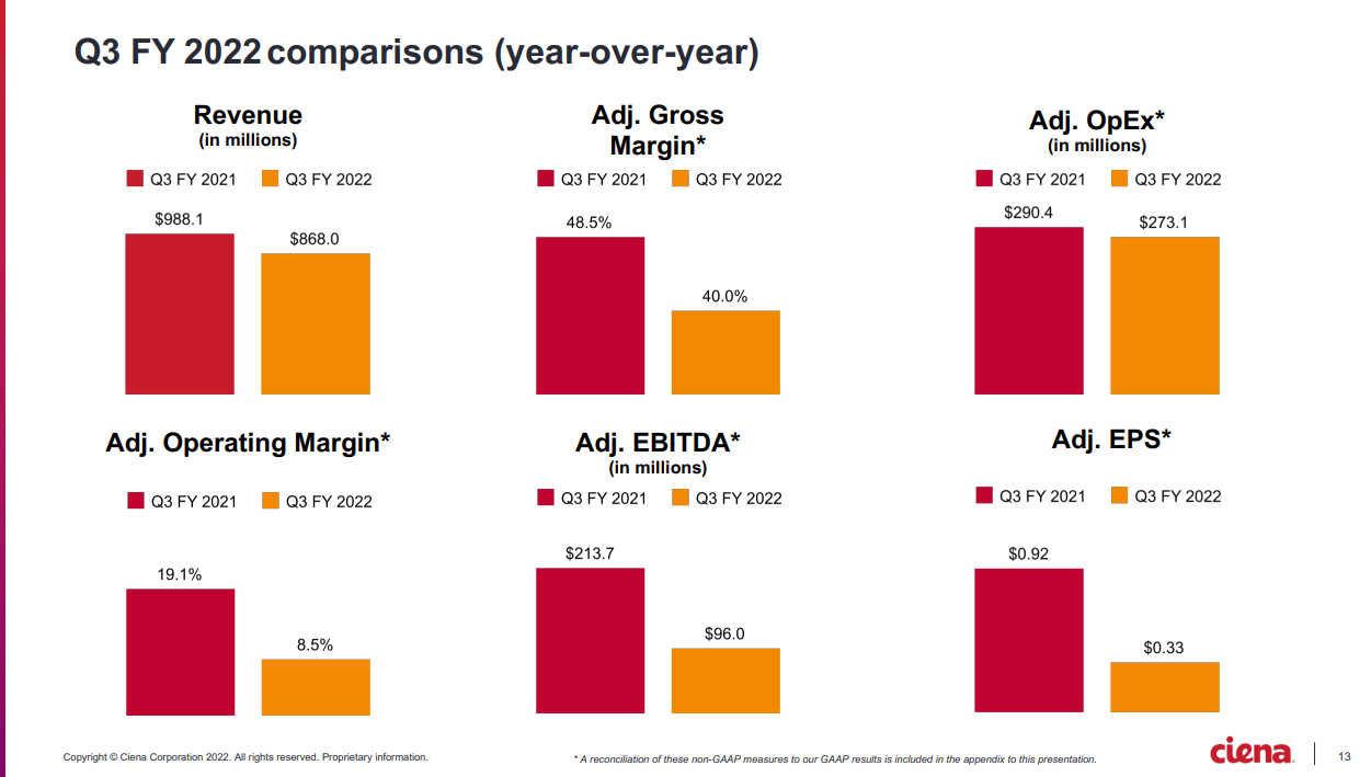 文章標(biāo)題:Ciena F22Q3營收8.68億美元同比下滑12.2%