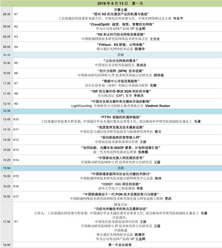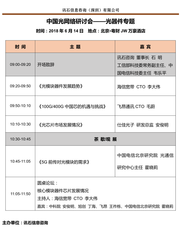 會(huì)議時(shí)間:大會(huì)時(shí)間2018年6月13日-14日兩天;光器件專題時(shí)間2018年6月14日上午;