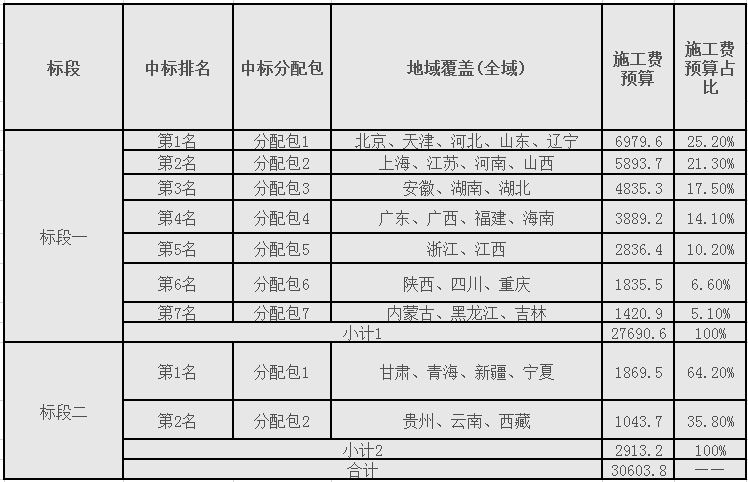 本項目劃分為2個標段。其中預估規(guī)模、工程預算、份額分配、實施地域等如下: