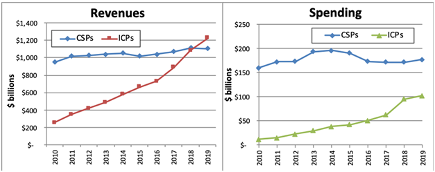 ICCSZ訊(編譯:Aiur) 美國(guó)市場(chǎng)咨詢公司LC表示,全球TOP 15的云公司(互聯(lián)網(wǎng)內(nèi)容商,ICP)在2019年完成了對(duì)全球TOP15通信服務(wù)商(CSP)的收入超越。資本開(kāi)支方面,互聯(lián)網(wǎng)內(nèi)容商和通信服務(wù)商的差距也在不斷拉近(如下圖所示),包括他們?cè)诨ヂ?lián)網(wǎng)基礎(chǔ)設(shè)施的投資。