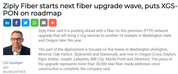 Ziply Fiber目前正在使用GPON,但公司表示“很快就會(huì)采用XGS-PON”。