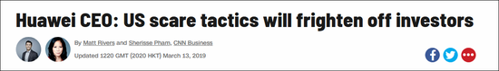 很快,華為也“安排”了一場采訪。13日,華為創(chuàng)始人兼首席執(zhí)行官任正非在深圳總部接受美媒CNN采訪時(shí)表示,美國政府針對華為的做法可能會損害美國的國際聲譽(yù)。若特朗普“今天恐嚇一個(gè)國家,明天威脅一家公司,或是肆意逮捕某人,那么以后就沒有人敢在美國投資了”。