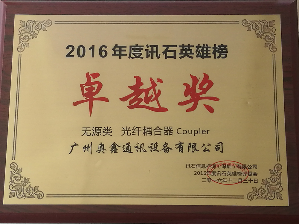 自2002年成立以來(lái),廣州奧鑫一直致力于“做全球光纖器件領(lǐng)先企業(yè)”,始終堅(jiān)持“以人為本,科技興司,面向國(guó)際,持續(xù)發(fā)展”的經(jīng)營(yíng)理念,認(rèn)真踐行“可靠源自專業(yè),奧鑫讓我放心”的產(chǎn)品理念。公司內(nèi)部設(shè)有省級(jí)技術(shù)研究工程中心,全面負(fù)責(zé)新產(chǎn)品、新工藝、新設(shè)備的研發(fā)工作,具有極強(qiáng)的科研開發(fā)和項(xiàng)目管理能力。2016年,廣州奧鑫的“光纖耦合器Coupler”以其高品質(zhì)獲得2016年度訊石英雄榜光纖類最高獎(jiǎng)項(xiàng)—卓越獎(jiǎng)。