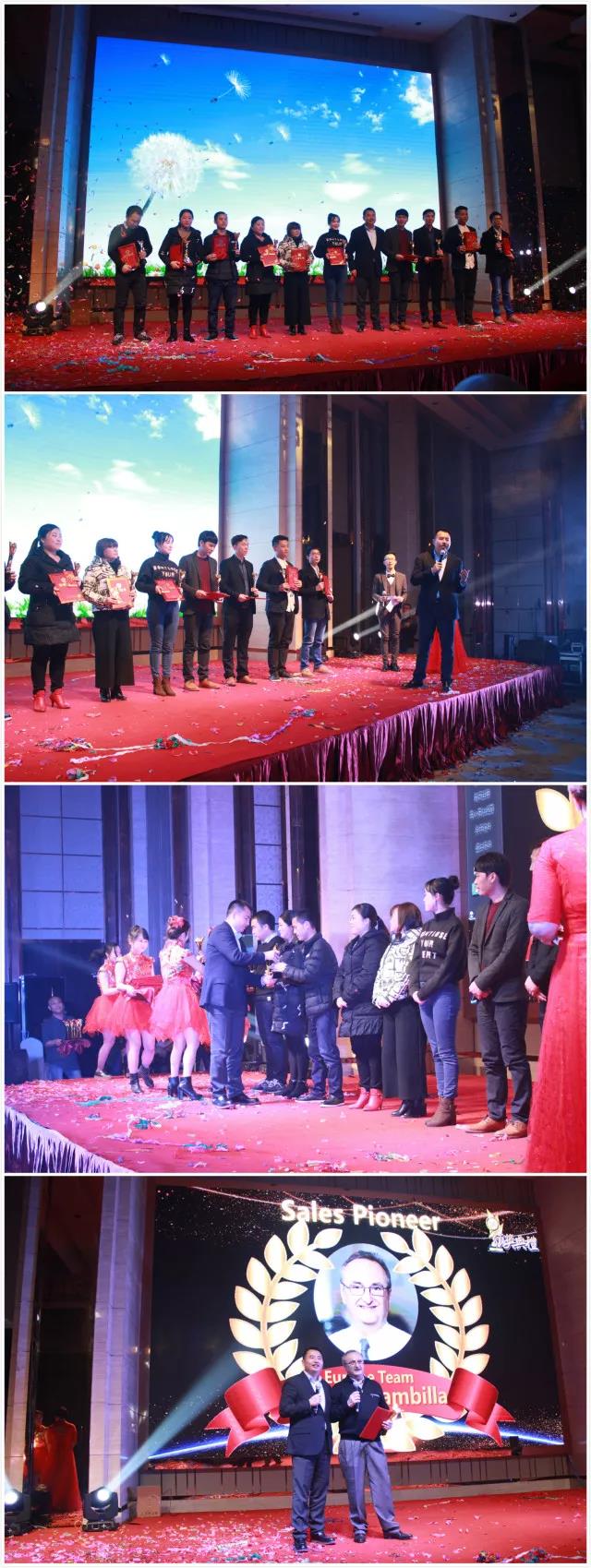 一波表演的精彩結束了,但是晚會的精彩還在繼續(xù),到了表彰過去一年在工作崗位上表現(xiàn)突出的華拓人——優(yōu)秀員工頒獎典禮。范董親自上臺為每一位獲獎的員工頒發(fā)證書、獎杯,他們沒有豪言壯語,他們沒有豐功偉績。但他們用行動告訴我們什么是主人翁的精神。他們在工作崗位上兢兢業(yè)業(yè),銳意進取,服從整體安排,任勞任怨。工作態(tài)度誠懇,有上進心,能堅持原則。范董說到,他相信華拓優(yōu)秀的員工還有很多,很感謝每一位華拓人一年以來的辛勤付出和對公司的支持。最后還特別頒發(fā)了“銷售先鋒獎”給歐洲分公司的同事Giorgio Brambilla,感謝他在剛加入華拓的第一年,就助力華拓攻下大客戶。
