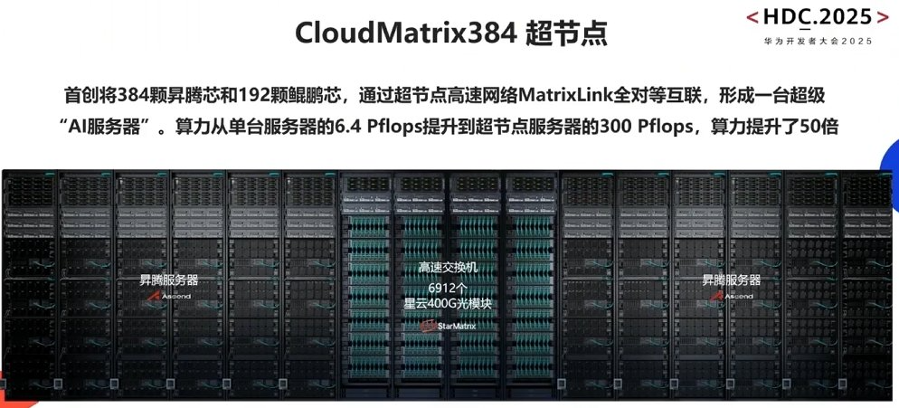 華為CloudMatrix并非簡單的“堆卡”,而是通過高帶寬全對等互聯(lián)(Peer-to-Peer)來設(shè)計,這也是CloudMatrix 384硬件架構(gòu)的一大創(chuàng)新。正如前華為CEO任正非所言:“我們單芯片還是落后美國一代,我們用數(shù)學(xué)補物理、非摩爾補摩爾,用群計算補單芯片,在結(jié)果上也能達到實用狀況。”