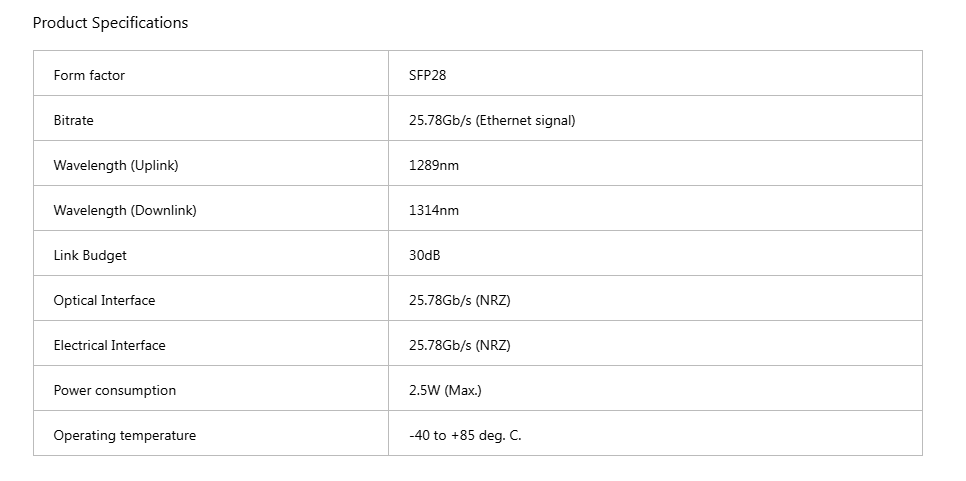 25G SFP28 80km BiDi光模塊具備以下特點(diǎn):