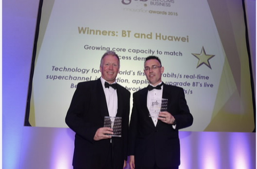 ICCSZ訊 6月9日,華為宣布在國際電信行業(yè)權(quán)威媒體《全球通信商業(yè)》(GTB,Global Telecoms Business)舉辦的年度電信行業(yè)創(chuàng)新頒獎典禮上,英國電信(British Telecom)攜手華為榮獲“GTB 2015創(chuàng)新獎:固網(wǎng)基礎(chǔ)設(shè)施創(chuàng)新獎”(GTB Innovation Award 2015:Fixed network infrastructure innovation),以表彰華為與英國電信合作完成的業(yè)界最高速率3Tbps超高速光傳輸現(xiàn)網(wǎng)測試,以及在都柏林與貝爾法斯特之間的波分現(xiàn)網(wǎng)上實施的400Gbps OTN部署。