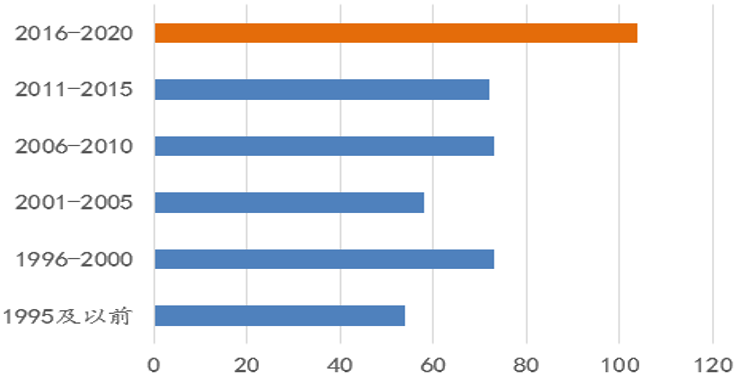 憑借容量大、穩(wěn)定性高、建設運營模式成熟,國際海纜成為連接全球的重要信息基礎設施,成為連接國際互聯(lián)網(wǎng)的主動脈,全球95%以上的國際通信流量由海纜承載。國際通信海纜的設計使用壽命為20-25年,目前全球40%的海纜于2000年之前建設,已經(jīng)臨近使用壽命,因此目前全球通信海纜迎來了大規(guī)模的更新?lián)Q代,2016至2020年五年間新建國際通信海纜數(shù)量達到104條,創(chuàng)了歷史新高。