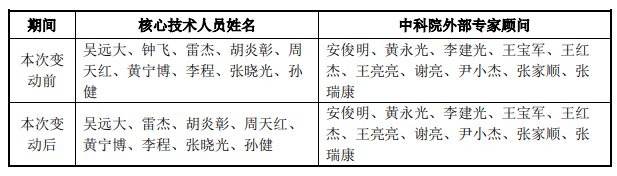 截至本公告披露日,公司核心技術(shù)人員及中科院外部專家顧問變動如下: