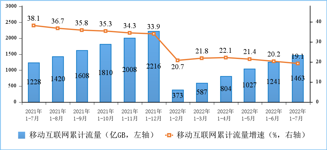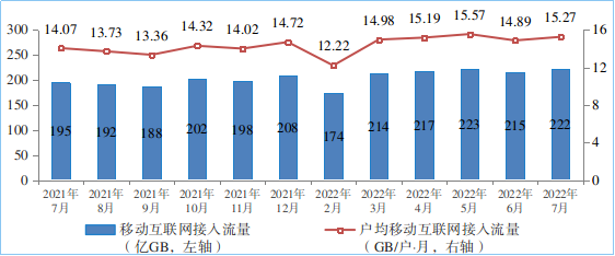 移動(dòng)互聯(lián)網(wǎng)流量較快增長(zhǎng)。1-7月份,移動(dòng)互聯(lián)網(wǎng)累計(jì)流量達(dá)1463億GB,同比增長(zhǎng)19.1%。截至7月末,移動(dòng)互聯(lián)網(wǎng)用戶數(shù)達(dá)14.55億戶,比上年末凈增3955萬(wàn)戶。7月當(dāng)月戶均移動(dòng)互聯(lián)網(wǎng)接入流量(DOU)達(dá)到15.27GB/戶·月,同比增長(zhǎng)8.5%,比上年底高0.55GB/戶·月。