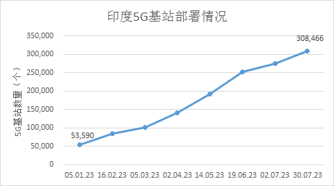 一年前,即2022年8月17日,這些電信公司被分配了頻譜。根據(jù)印度電信部(DoT)共享的數(shù)據(jù),自那以后,截至2023年7月30日,他們已經(jīng)部署了308466個(gè)5G基站。印度政府稱其為世界上5G服務(wù)推出速度最快的國家。