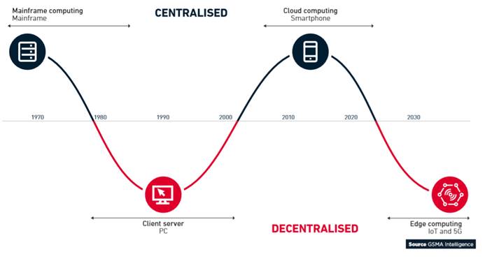 曾幾何時(shí),計(jì)算主要是大型主機(jī)計(jì)算(主機(jī)),具備中心化特點(diǎn),然后過渡到客戶端服務(wù)器(PC),去中心化,再然后又進(jìn)入云計(jì)算時(shí)代(智能手機(jī)),中心化特點(diǎn)再次明顯,接下來將進(jìn)入邊緣計(jì)算時(shí)代(物聯(lián)網(wǎng)和5G),進(jìn)一步去中心化。