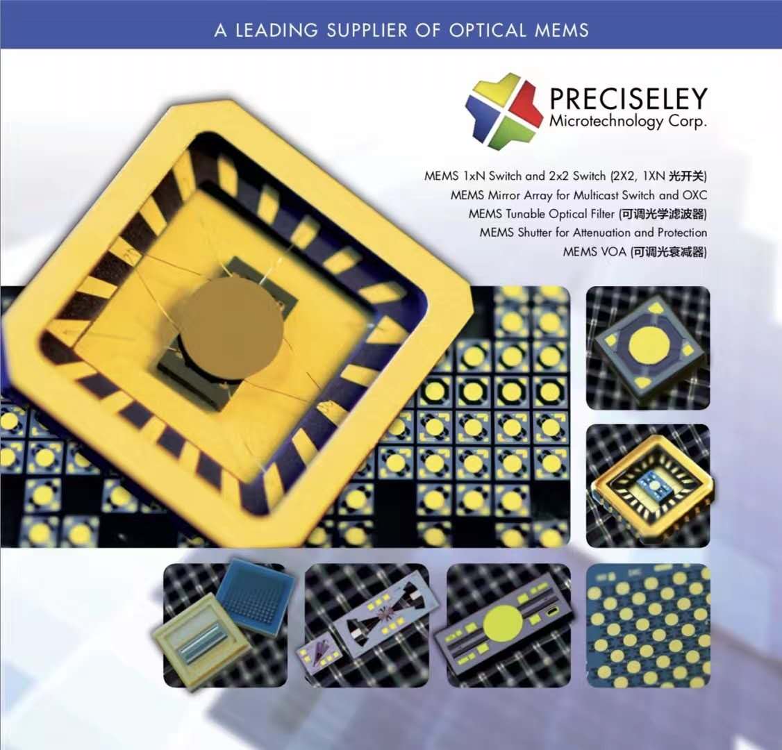 ICCSZ訊 上周,訊石會員企業(yè)——Preciseley公司在2018年OFC上成功展示其自有專利技術的微機電系統(tǒng)芯片和模塊產品,現(xiàn)場得到眾多客戶的強烈興趣和好評。本次Preciseley公司展示的主要產品除了應用于光通訊的MEMS 1XN光開關、2X2光開關、MEMS MCS (Multicast Switch)、OXC、MEMS TOF(Tunable Optical Filter),在相干光收發(fā)器中起保護和光衰減的MEMS Shutter芯片,也展示了應用于物聯(lián)網(wǎng)、智慧城市的近紅外傅立葉微型物質探測器以及用于無人駕駛的車載激光雷達(LIDAR)激光掃描芯片。