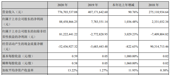 摘要:博創(chuàng)科技2020年度實(shí)現(xiàn)營(yíng)收7.77億元,比上年同期增長(zhǎng)90.76%;歸屬于母公司股東凈利潤(rùn)8,845.89萬元,比上年同期增長(zhǎng)1,036.48%。從業(yè)務(wù)結(jié)構(gòu)來看,“光有源器件”是企業(yè)營(yíng)業(yè)收入的主要來源。