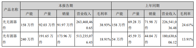 報(bào)告期內(nèi),電信運(yùn)營(yíng)商升級(jí)傳輸網(wǎng)帶動(dòng)DWDM器件升級(jí)換新,光無源器件產(chǎn)品實(shí)現(xiàn)銷售收入2.63億元,比上年同期增長(zhǎng) 16.30%,占總銷售收入的33.92%。報(bào)告期內(nèi),國(guó)內(nèi)電信運(yùn)營(yíng)商10G PON網(wǎng)絡(luò)建設(shè)和互聯(lián)網(wǎng)企業(yè)數(shù)據(jù)中心建設(shè)持續(xù)投入,公司的PON光模塊和數(shù)據(jù)中心光模塊銷售實(shí)現(xiàn)同比快速增長(zhǎng),無線光模塊銷售實(shí)現(xiàn)突破。公司光有源器件產(chǎn)品實(shí)現(xiàn)銷售收入 5.13億元,比上年同期增長(zhǎng)184.14%,占總銷售收入的66.08%。