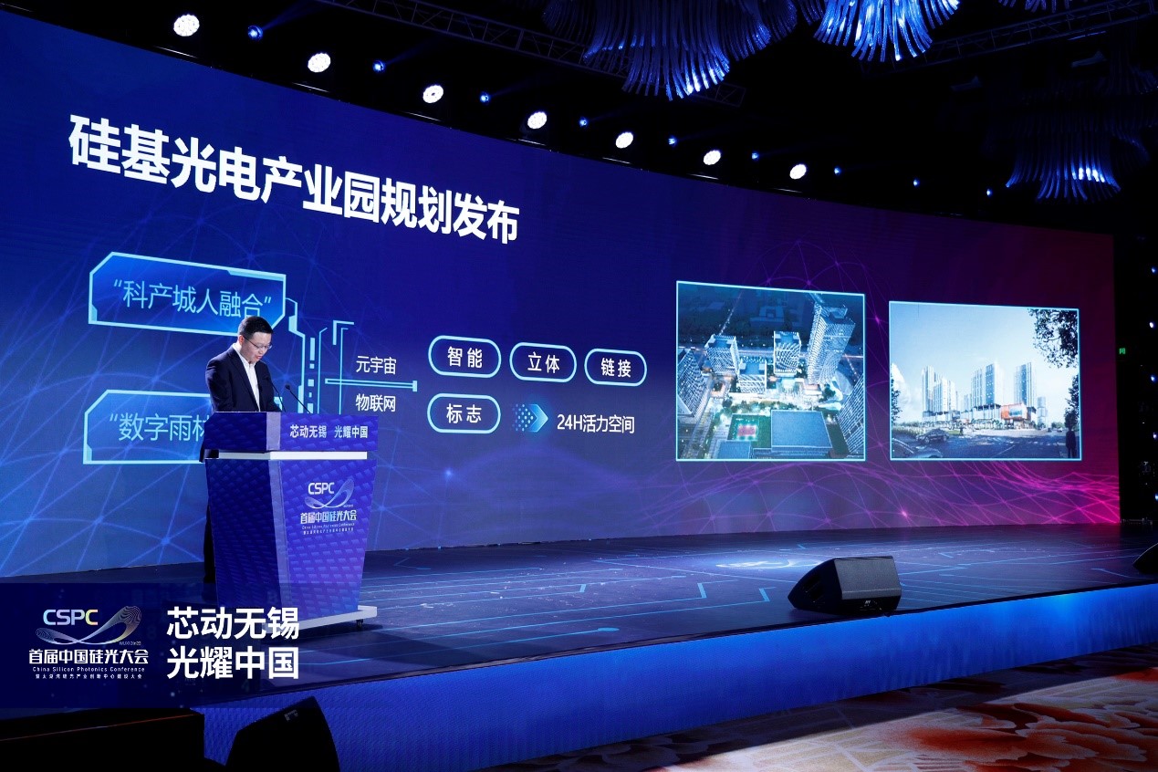 高新區(qū)黨工委委員、管委會(huì)副主任、新吳區(qū)委常委、副區(qū)長、太科園黨工委書記顧國棟介紹太湖灣硅光產(chǎn)業(yè)專項(xiàng)政策“新光18條”,以及發(fā)布硅基光電產(chǎn)業(yè)園規(guī)劃。