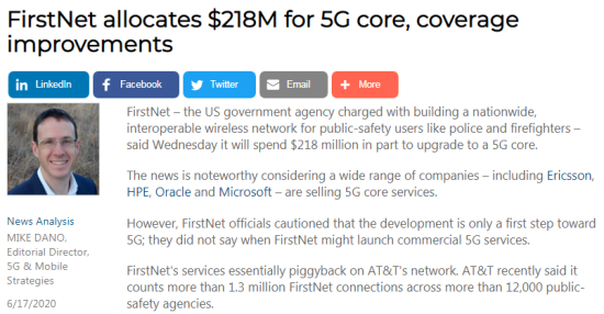 考慮到包括愛(ài)立信、HPE、甲骨文和微軟在內(nèi)的眾多公司都在出售5G核心服務(wù),這一消息值得關(guān)注。然而,FirstNet的關(guān)于警告稱,這只是邁向5G的第一步,并且沒(méi)有透露何時(shí)推出商用5G服務(wù)。