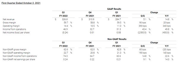 ICC訊(編譯:Nina)上周,VIAVI公布了其截至2021年10月2日的2022財(cái)年第一季度財(cái)務(wù)業(yè)績(jī)。