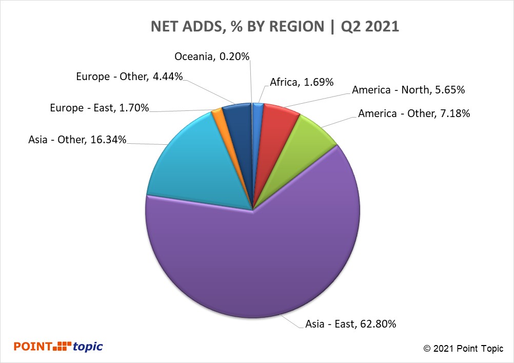 Figure 3. Share of net adds of fixed broadband subscribers by region. Source – Point Topic.