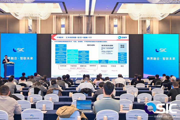 摘要:以AI+光電為核心,促進(jìn)光通信產(chǎn)業(yè)鏈跨界融合!OSIC 2024 第2屆光電智聯(lián)大會(huì)在12月5日在蘇州成功開幕,大會(huì)第一天探討了光電行業(yè)跨界趨勢(shì),包括低空經(jīng)濟(jì)、空天產(chǎn)業(yè)、汽車智能和機(jī)器人應(yīng)用的光電互聯(lián)。本屆大會(huì)來(lái)自光電企業(yè)、高校、投資機(jī)構(gòu)等相關(guān)參會(huì)單位突破400家,獲得了光電子、光通信行業(yè)人士的熱烈關(guān)注。