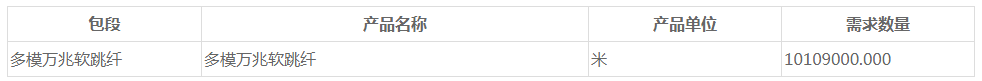 ICC訊 (編輯:Nicole) 中國(guó)移動(dòng)啟動(dòng)2021年至2022年多模萬兆軟跳纖產(chǎn)品集中采購(gòu)(招標(biāo)編號(hào):CMCC20210000067),擬采購(gòu)多模萬兆軟跳纖產(chǎn)品1,010.90萬米,采購(gòu)需求滿足期為1年,設(shè)置最高投標(biāo)總價(jià)不含稅金額不高于7791180元人民幣。