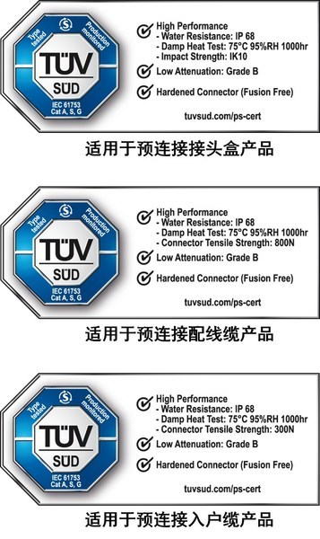 該認證服務(wù)基于先進的國際標準制定,以更高更嚴的標準對無源光纖網(wǎng)絡(luò)產(chǎn)品及組件的機械可靠性、環(huán)境可靠性、氣密性以及光學(xué)性能進行驗證。認證過程包括產(chǎn)品測試、工廠質(zhì)量保證能力檢查和產(chǎn)品一致性檢查,以及獲證后的監(jiān)督。適用于一系列的無源光纖網(wǎng)絡(luò)產(chǎn)品,包括連接器、光學(xué)組件以及多種類型保護外殼等,目前已發(fā)布3種產(chǎn)品種類:
