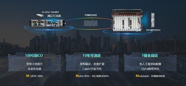 第四是全自動(dòng)化,開(kāi)發(fā)可調(diào)制光標(biāo)簽,在不影響信道業(yè)務(wù)的情況下,隨路攜帶波長(zhǎng)、譜寬、碼型等各類參數(shù),使能1鍵自動(dòng)化規(guī)劃和配置,免去大量人工成本,運(yùn)維成本節(jié)約90%。