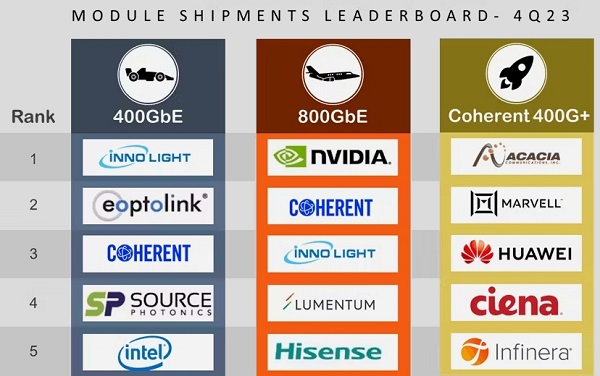 據(jù)通信模塊出貨量方面處于領(lǐng)先地位?;?00ZR可插拔模塊的大量出貨情況下,Acacia和Marvell在高性能相干接口的出貨量方面處于領(lǐng)先地位。