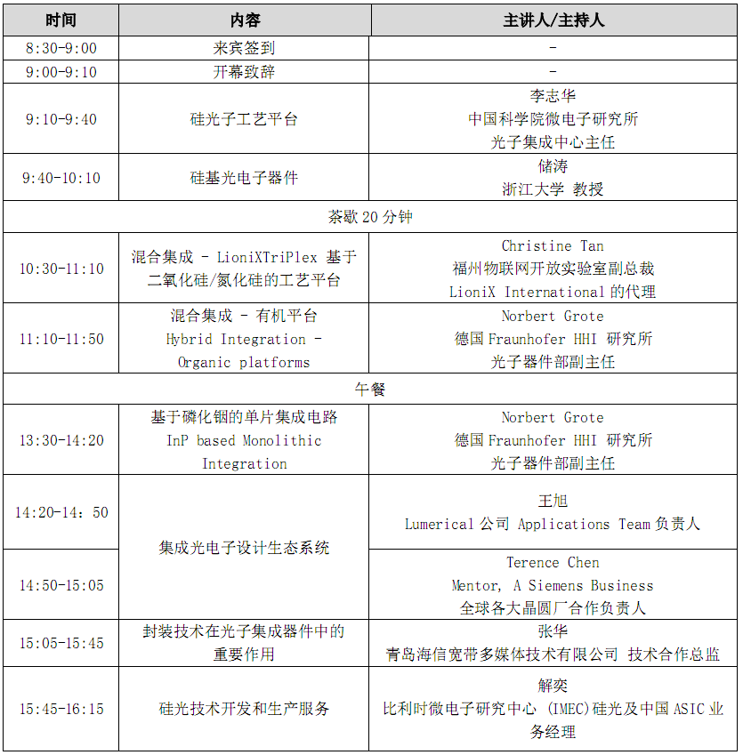 光子集成電路:技術(shù)方案和生態(tài)系統(tǒng)研討會議程