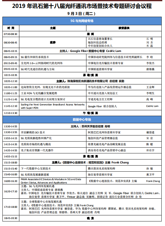 ICCSZ訊 (編輯:Nicole)9月2-3日,訊石第十八屆光纖通訊市場(chǎng)暨技術(shù)專題研討會(huì)(以下簡(jiǎn)稱:第十八屆訊石研討會(huì))將在深圳大中華喜來登酒店六樓宴會(huì)廳隆重來襲!屆時(shí)誠邀行業(yè)客戶及新老朋友親臨現(xiàn)場(chǎng),探行業(yè)專家學(xué)者帶來的最前沿技術(shù)動(dòng)態(tài),觀權(quán)威人士及分析師帶來的最全面市場(chǎng)數(shù)據(jù),聽國內(nèi)外知名通信龍頭企業(yè)高層分享對(duì)市場(chǎng)大環(huán)境的見解,與大家一起共同探尋通信市場(chǎng)未來發(fā)展趨勢(shì)。截止2019年8月28日,報(bào)名參會(huì)人數(shù)已突破650人,300余家行業(yè)企業(yè)及單位!