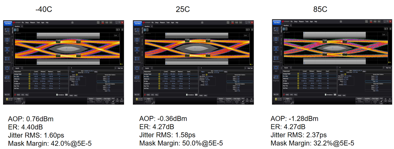 4. 高速調(diào)制:克服低溫與高溫光芯片調(diào)制速率問題,真正滿足無致冷的工業(yè)級高速產(chǎn)品;