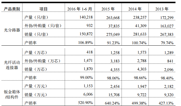 科信技術(shù)專注于FTTX 接入網(wǎng)、無線接入網(wǎng)和傳輸網(wǎng)中通信網(wǎng)絡(luò)物理連接設(shè)備及解決方案的提供,主要產(chǎn)品包括 FTTX 接入網(wǎng)ODN 系列產(chǎn)品、無線接入系列產(chǎn)品以及傳輸網(wǎng)相關(guān)產(chǎn)品等。公告給出了2016年1-6月各類產(chǎn)品銷售數(shù)據(jù),其中ODN產(chǎn)品營收1.66億元,占比48.29%,無線接入產(chǎn)品營收1.39億元,占比40.25%,這兩類產(chǎn)品占據(jù)科信技術(shù)產(chǎn)品近9成的銷售額。