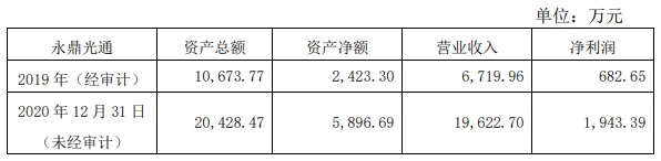 永鼎光通最近兩年的主要財(cái)務(wù)數(shù)據(jù)