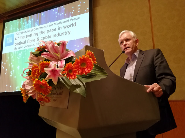 在11日的2017亨通集團(tuán)與媒體互動交流會上,約翰遜作了《中國市場決定世界光纖光纜產(chǎn)業(yè)格局》的主題演講,分享了CRU眼中的全球光纖光纜市場現(xiàn)狀及未來展望,并特別強(qiáng)調(diào)“中國在全球光纖需求中占最大的份額”、“隨著中國的需求高于預(yù)期,全球光纖光纜需求2016年將再創(chuàng)新高”。
