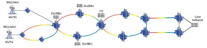 OTN具有大帶寬、低時延、多業(yè)務透明傳送、高精度同步、安全可靠、易維護等特點,很好的匹配了5G的需求,是未來5G承載的主流技術。在對時延極其敏感的5G前傳網(wǎng)絡中,采用OTN承載,可實現(xiàn)CPRI、eCPRI、NGFI、Ethernet等多路業(yè)務信號的點到點波長直達傳輸,中間節(jié)點光層穿通,所有業(yè)務的時延都是最低。采用OTN技術實現(xiàn)5G前傳,相對于光纖直驅、無源波分、分組轉發(fā)等其他方式來說,在帶寬、多業(yè)務接入、故障定位、網(wǎng)絡保護等方面也有優(yōu)勢。5G回傳網(wǎng)絡將會是固移業(yè)務統(tǒng)一承載的數(shù)據(jù)中心互聯(lián)網(wǎng)絡,各級DC通過光網(wǎng)絡高速互聯(lián),存在多種解決方案,基于分組增強OTN節(jié)點設備的光電混合調(diào)度,承載網(wǎng)進行扁平化改造,實現(xiàn)多路徑通達,減少網(wǎng)絡層次及設備跳數(shù),可以進一步降低時延。OTN傳送平面能同時在硬管道和軟管道上進行各種顆粒業(yè)務的隔離和調(diào)度,助力5G網(wǎng)絡實現(xiàn)端到端切片。