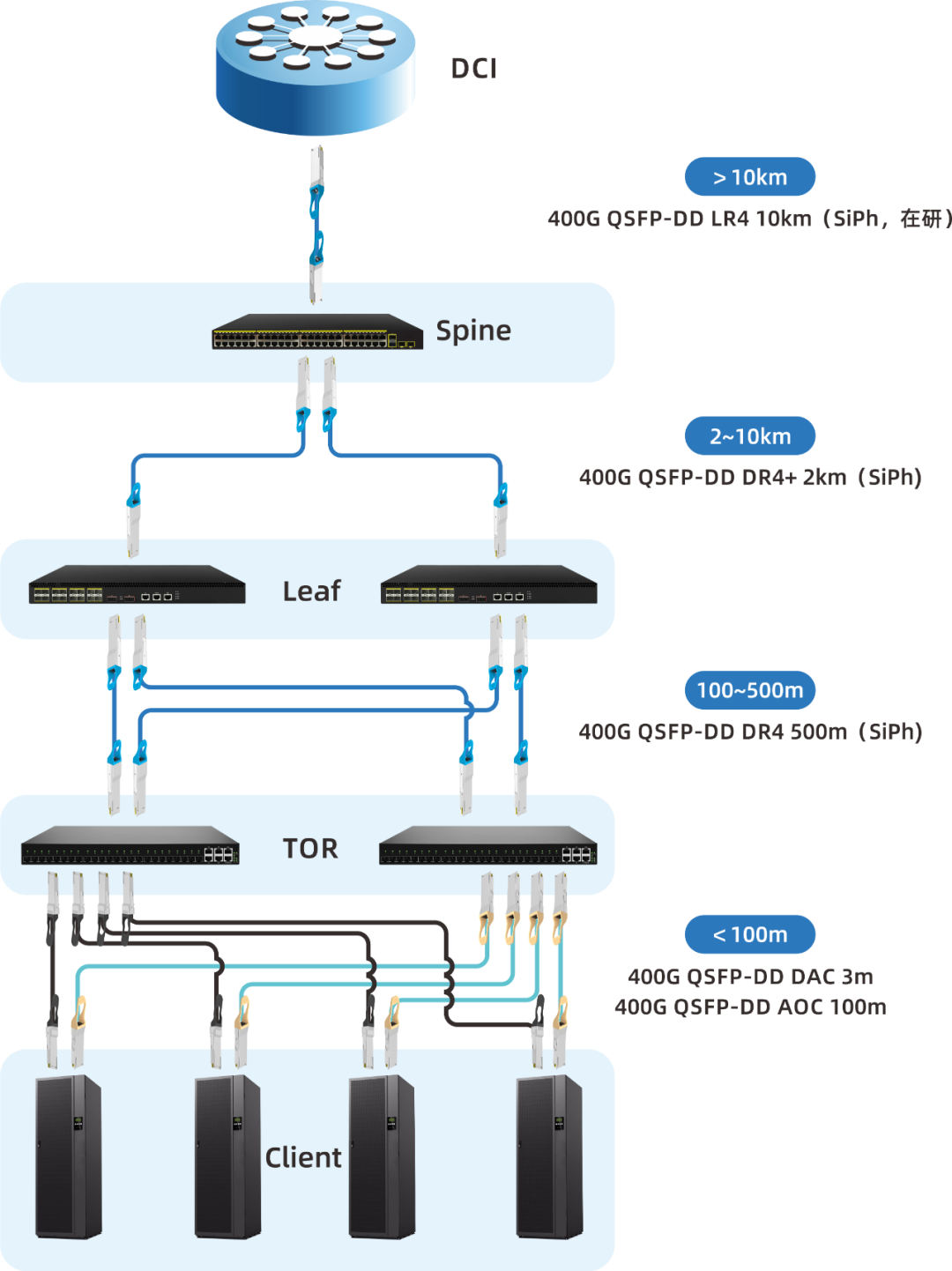 ICC訊 100G/200G數(shù)據(jù)中心的部署極大地提高了云計算技術(shù)發(fā)展的帶寬增值,追尋最優(yōu)的400G數(shù)據(jù)中心模型一直是行業(yè)的熱點和焦點。依托8路光學(xué)、硅光技術(shù)和高速DAC的定位發(fā)展,易飛揚近日宣布完成兩種不同架構(gòu)的400G數(shù)據(jù)中心的產(chǎn)品線的研發(fā)和量產(chǎn)布局,這兩種架構(gòu)毋庸置疑為不同的用戶需求而設(shè)計。