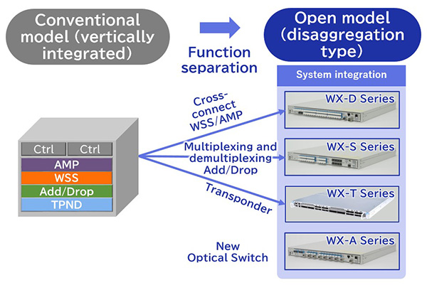 傳統(tǒng)上,傳輸網(wǎng)絡(luò)是由與垂直集成模型相同的供應(yīng)商的設(shè)備構(gòu)建的。然而,NEC 的新型開放式光傳輸設(shè)備支持多供應(yīng)商配置,允許客戶根據(jù)需要從多個(gè)供應(yīng)商采購和組合設(shè)備。